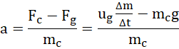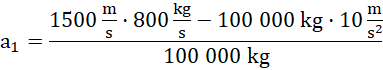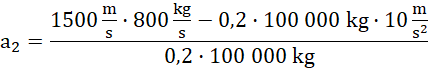 Pamiętaj, siła ciągu rakiety to iloczyn prędkości gazów spalinowych przez prędkości ich spalania. Zauważ, siły ciągu i ciężkości rakiety nie równoważą się, więc z drugiej zasady dynamiki wypadkowa tych sił to iloczyn masy ciała i przyspieszenia. Na początku ruchu masa rakiety to masa maszyny z pełnym bakiem paliwa, w drugim momencie badania ruchu, masa rakiety to tylko 20% początkowej masy.