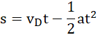 Drogę w ruchu jednostajnie opóźnionym z prędkością początkową zapisujemy jako: