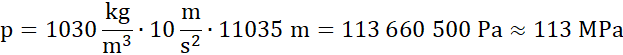 Ciśnienie na dnie Rowu Mariańskiego wynosi około 113 MPa.