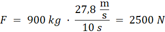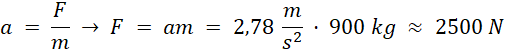 Z drugiej zasady dynamiki wiesz, że wartość przyspieszenia, jakie ma ciało jest ilorazem działającej siły przez masę ciała. Przekształć tę zależność, aby wyznaczyć wartość siły działającej na samochód.