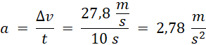 Oblicz przyspieszenie ciała z definicji przyspieszenia: