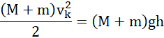 Zastosuj zasadę zachowania energii dla wahadła – w momencie trafienia go przez pocisk jego energia mechaniczna to energia kinetyczna (iloczyn połowy masy klocka z pociskiem i kwadratu ich wspólnej prędkości), a w momencie maksymalnego wychylenia jego energia mechaniczna to energia potencjalna (iloczyn wysokości, przyspieszenia ziemskiego i masy klocka z pociskiem). Dzięki tej równości wyznaczysz prędkość wspólną klocka i pocisku. Następnie z zasady zachowania pędu zapisz równość pomiędzy pędem początkowym (pęd pocisku), a pędem końcowym (pęd klocka z utkwionym pociskiem). Wstaw do równości wcześniej wyznaczoną prędkość wspólną i wylicz szukaną prędkość pocisku.