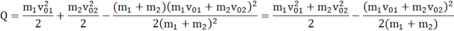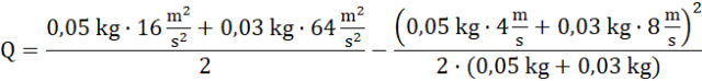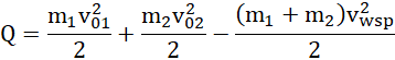 W przypadku zderzenia niesprężystego energia kinetyczna kul nie jest zachowana – jej część zamienia się w energię wewnętrzną kul, która jest równa ciepłu wydzielonemu podczas zderzenia: