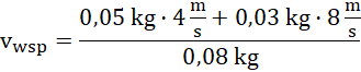 Wstawiając wyznaczoną wcześniej prędkość kul po zlepieniu: