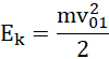 Całkowita energia kinetyczna wózka to energia kinetyczna przed zderzeniem: