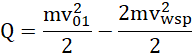 W przypadku zderzenia niesprężystego energia kinetyczna wózków nie jest zachowana – jej część zamienia się w energię wewnętrzną wózków, która jest równa ciepłu wydzielonemu podczas zderzenia: