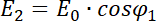 – amplituda drgań światła po przejściu przez polaryzator 2
