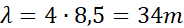 | Długość fali λ [cm] | 202,4 | 172 | 138,8 | 100,4 | 68,4 | 34 |