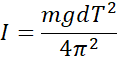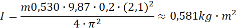 Korzystając ze wzoru podanego w treści oraz obliczonego już w poprzednim podpunkcie okresu obliczamy moment bezwładności bryły.