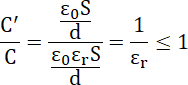 Określ, jak zmieni się pojemność po usunięciu dielektryka z kondensatora płaskiego, wiedząc, że materiał ma względną przenikalność elektryczną równą