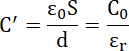Określ, jak zmieni się ładunek zgromadzony na okładkach po usunięciu dielektryka z kondensatora płaskiego, wiedząc, że materiał ma względną przenikalność elektryczną równą