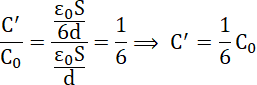 Zauważ, że skoro odległość między płytkami wzrosła 6-krotnie, to pojemności kondensatora maleje sześć razy (