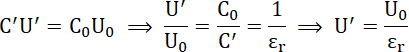 razy. Ponieważ kondensator został odłączony od źródła napięcia, to ładunek elektryczny nie uległ zmianie (wynika to z zasady zachowania ładunku). W takim razie napięcie musiało zmaleć, aby zachodziła równość (