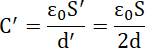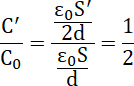 Zauważ, że skoro odległość między płytkami wzrosła dwukrotnie, to pojemności kondensatora maleje dwa razy (