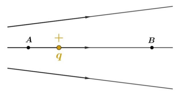 Na podstawie linii pola elektrostatycznego można wnioskować, że natężenie tego pola jest większe w punkcie A, a mniejsze w punkcie B (gęstość linii sił pola jest większa w punkcie A). W takim razie wartość siły elektrycznej będzie zmieniała się w różnych punktach pola, więc cząstka dodatnia będzie poruszać się ruchem przyspieszonym niejednostajnie.