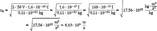 Wyznacz szybkość, jaką uzyska elektron w czasie 1 μs, wiedząc, że początkowo się nie poruszał, a następnie został przyspieszony pod napięciem 50 V.