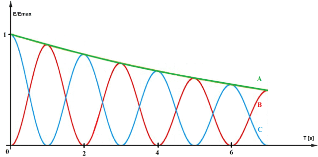 Uwzględniając straty energii spowodowane siłami tarcia, amplituda drgań na wykresach przedstawiających przemiany energii będzie malała z czasem.
