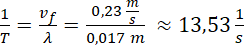 ) i jej okresu (T). Dokonując przekształceń, wyznaczamy okres. Częstotliwość (f) obliczamy jako odwrotność okresu.