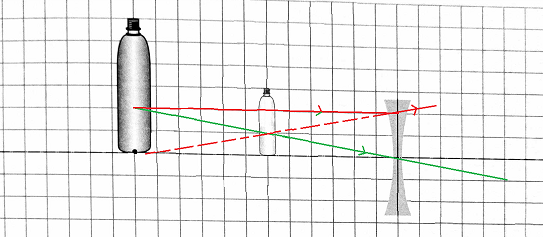 Przedmiot jest umieszczony w ognisku. Ognisko wyznacza przecięcie przedłużenia czerwonego promienia z osią optyczną.