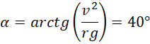 Wartość tangensa kąta jest równa współczynnikowi tarcia opon o asfalt.