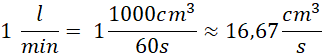 Należy zamienić l na cm3, a także min na s. Następnie wykonujesz działanie i otrzymujesz wynik.