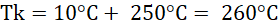 Przyrost wartości temperatury w czasie jest proporcjonalny, zatem można ułożyć proporcję; skoro dla 100s zmiana temperatury wynosi 125°C, to dla 200swyniesie dwa razy więcej – 250°C. Temperatura początkowo to 10°C, zatem końcowa to 250°C + 10°C = 260°C.
