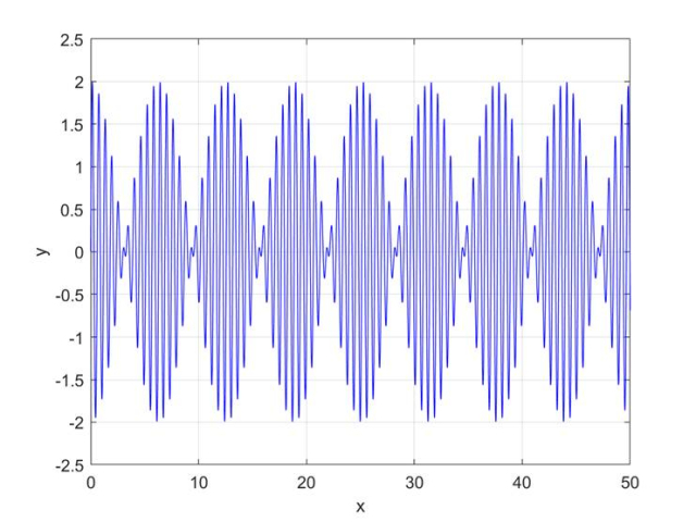Obserwujemy nakładanie się na siebie sinusoid w taki sposób, że tworzą one naprzemiennie obszary wzmocnienia i wyciszenia. Dokładnie w taki sposób słyszymy efekt dudnienia.