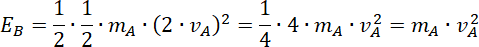 Wiemy, iż ciało B ma masę dwukrotnie mniejszą niż A, zaś szybkość dwukrotnie większą. Znaczy to, iż: