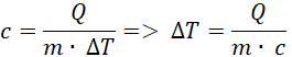 Przekształcamy wzór tak, aby wyznaczyć zmianę temperatury. Podstawiamy do wzoru odpowiednie wartości. Ciepło właściwe wody to