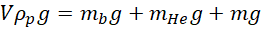Na początku zapisz równość sił. Siła wyporu musi przezwyciężyć siłę ciężkości powłoki balonu z olinowaniem i koszem, siłę ciężkości helu i siłę ciężkości dodatkowego obciążenia. W tym przypadku cieczą, w której zanurzamy ciało jest powietrze.