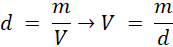 Objętość ciężarka jest nieznana, wyznacz ją z równania na gęstość: