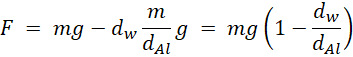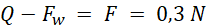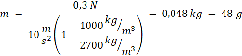 Siła wypadkowa, czyli różnica między siłą ciężkości i siłą wyporu ciężarka wynosi 0,3 N