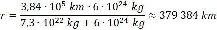 Namierzamy odległość r do Księżyca do środka ciężkości układu. Iloczyn tej długości jest równy iloczynowi odległości Ziemi od środka masy układu i jej masy. Zapisujemy tę zależność i przekształcamy, obliczając potrzebną wielkość.