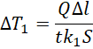 Wykaż, że spadki temperatur, które ustalą się po zetknięciu dwóch warstw wykonanych z różnych materiałów są odwrotnie proporcjonalne do współczynników cieplnego przewodnictwa właściwego warstw.