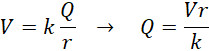 Po zetknięciu się kulek wyrównają się ich potencjały. Zgodnie z zasadą zachowania ładunku całkowity ładunek znajdujący się na kulkach początkowo pozostanie taki sam. Zapisujemy ładunek korzystając z przekształconego wzoru na potencjał i wykonujemy obliczenia podstawiając odpowiednie dane liczbowe.
