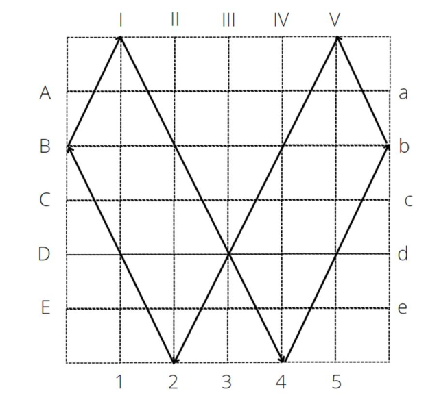 Na schemacie pokazano 4 stojące pionowo lustra, które są sklejone ze sobą krawędziami. W jednym lustrze wycięto otwór B i wpuszczono tam promień świetlny. Narysuj dalszy bieg promienia i napisz, w których punktach będzie padał promień światła.