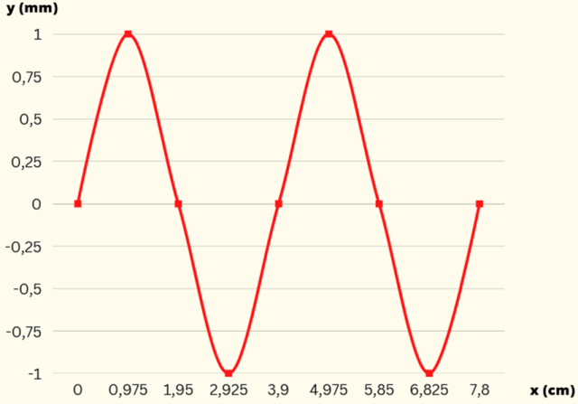 Ukazany wykres jest funkcją wychylenia (oś y) od położenia w przestrzeni (oś x).