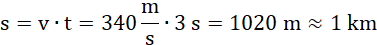 . Oznacza to, iż w trakcie 3 sekund, grzmot przebędzie: