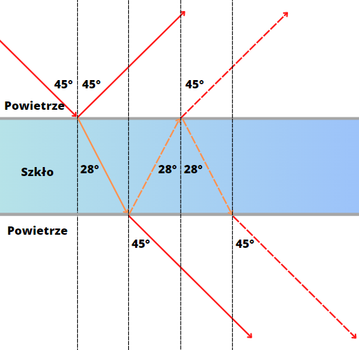 W tym zadaniu musisz narysować bieg promienia świetlnego.