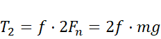 Siła, która powoduje opór przy wyciąganiu spodniego klocka to siła tarcia między klockami i stołem, oraz między dwoma klockami. Sytuacja równowagi sił tarcia i siły ciągnącej wskazuje na maksymalną siłę, która nie może poruszyć klockiem. Nieskończenie mała jej zmiana spowoduje ruch klocka. Siła tarcia pochodzi jedynie od nacisku liny, która znajduje się na stole. Wiedząc, że siła tarcia to iloczyn współczynnika tarcia i nacisku ciała, a ciężar to iloczyn masy i przyspieszenia grawitacyjnego, oblicz wartości, a następnie ich sumę przyrównaj do szukanej siły.