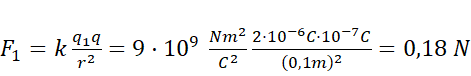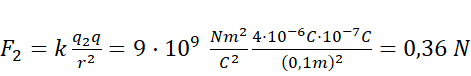 Oblicz wartość oddziaływań między ładunkami a ładunkiem próbnym. Zwróć uwagę, że masz do czynienia z siłą przyciągającą i odpychającą. Określ wartość siły wypadkowej.