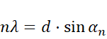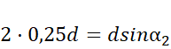 . Znając sinus kąta pierwszego prążka, opisz za jego pomocą siatkę dyfrakcyjną. Następnie podstaw znane wielkości do równania i oblicz kąt ugięcia dla prążka 2.