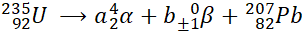 W tym zadaniu musisz wyznaczyć liczbę emisji alfa i beta przy rozpadzie uranu-235.