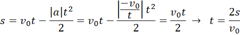 Zapisujemy wzory na opóźnienie i drogę w ruchu jednostajnie opóźnionym. Na ich podstawie tworzymy zestawienia czasów i przyspieszeń, skracając wielkości powtarzające się w liczniku i mianowniku powstałych ułamków.