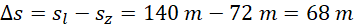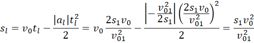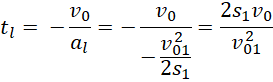 Na początku obliczamy opóźnienie samochodu, korzystając z danych pierwszej sytuacji. Następnie zapisujemy czas trwania drugiej sytuacji za pomocą znanych zmiennych. Zapisujemy wzór na drogę w ruchu jednostajnie opóźnionym i wstawiamy wyznaczone wielkości. Na koniec podstawiamy dane liczbowe i wykonujemy obliczenia.