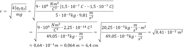Kulka zacznie się poruszać w stronę kulki kiedy siła oddziaływania elektrostatycznego między kulkami przeważy siłę ciężkości działająca na kulkę .