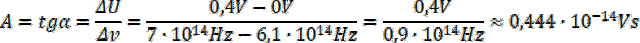 . Przy pomocy naszkicowanego wykresu określ pracę wyjścia oraz odczytaj wartość współczynnika A i dalej wartość stałej Plancka.