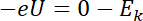 Dla pracy wyjścia napięcia hamującego elektrony energia kinetyczna elektronów jest równa 0:
