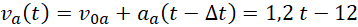 Zapisujemy zależności prędkości samochodów od czasu namierzanego od momentu wyjazdu opla. Następnie przyrównujemy je do siebie i obliczamy powstałe równanie. Prędkość w danym momencie obliczamy, wstawiając wyznaczoną wartość czasu do jednego ze wzorów. Wzajemną odległość pojazdów obliczamy jako wartość bezwzględną różnicy położeń samochodów.