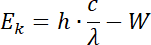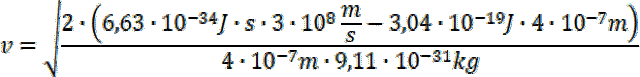 Korzystając z równania Einsteina i wzoru na energię kinetyczną elektronu obliczyliśmy szybkość elektronów opuszczających katodę fotokomórki;